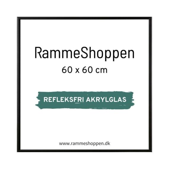 Elegant svart aluminiumram med reflexfritt glas – 60 x 60 cm