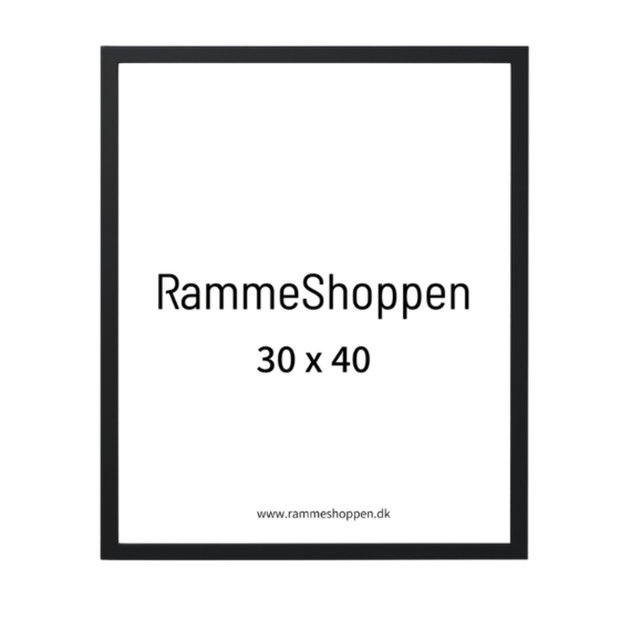 Den flotte, enkelte ramme str. 30x40 cm i glat, sort silkemat er håndlavet på vores værksted i Danmark.